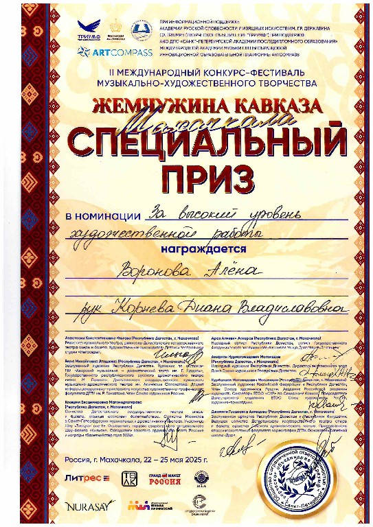 * Специальный приз II Международный конкурс-фестиваль музыкально-художественного творчества "Жемчужина Кавказа", Махачкала 22-25 мая 2025